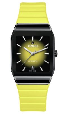 腕表搭载了Rado R766型机芯,可提供最高长达72小时动力储存,6点钟位置设日期窗口,具50米防水功能。再以色彩鲜明的柠檬黄、葡萄柚红与青柠绿渐变层表面,搭配同色调橡胶表带,呼应盛夏艳阳。