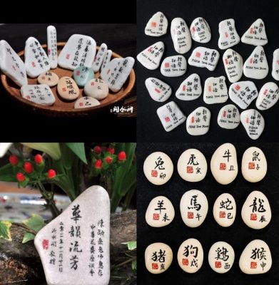 故这些年来,我的许多书法创作,是以石头为主的。我曾经送了一颗书法石头纸镇给一位专科医生好友,多年来他一直将该石头置于其诊所桌面上,不时将它握在手中。他说,工作烦累之余如此把玩该石头,可以相当的“疗愈”。