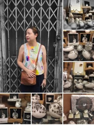 另一位我认识的“创意石头达人”,是居住在雪兰莪州的Fiona Loo吕峋莹女士,她也是大马著名书画家叶宝心老师的夫人。她专在花圃园地用石灰石(Limestone,其表面比较能上各类色料)或鹅卵石表面,以铅笔素描方式将她所钟爱的猫头鹰,精湛的表现出来。Fiona有一个很特殊的想法,就是从某宗教角度看,石头是带有生命的。换句话说,石头上若画上了图案,尤其是动物,是否也会依附在石头上的灵魂,让自己也活了起来?此说法不管是否属实,这也算是Fiona身为一名艺术家,所拥有的浪漫想法。经她这么一说,每当我看着Fiona画在石头上的猫头鹰,总感觉这戴了眼镜的猫头鹰,其眼镜片后的大眼睛,聚神的在瞪着我,好像想要告诉我些什么似的。