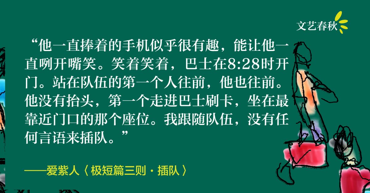 他一直捧着的手机似乎很有趣,能让他一直咧开嘴笑。笑着笑着,巴士在8:28时开门。站在队伍的第一个人往前,他也往前。他没有抬头,第一个走进巴士刷卡,坐在最靠近门口的那个座位。我跟随队伍,没有任何言语来插队。