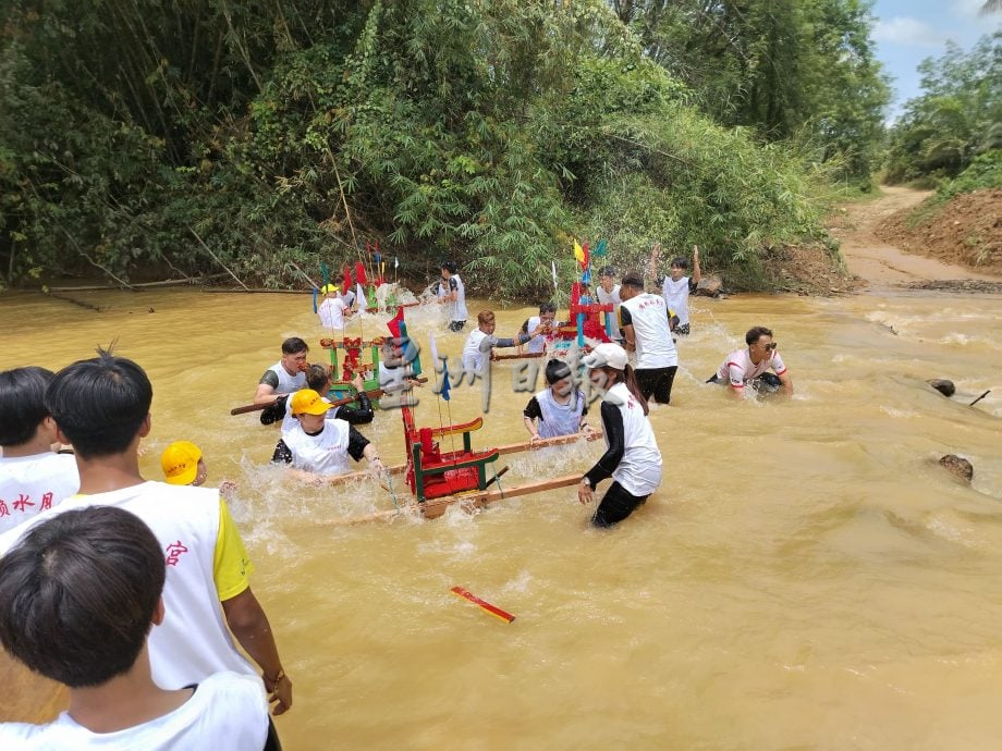 五顶神轿到河上流戏水洗净污秽。(摄:李永球)