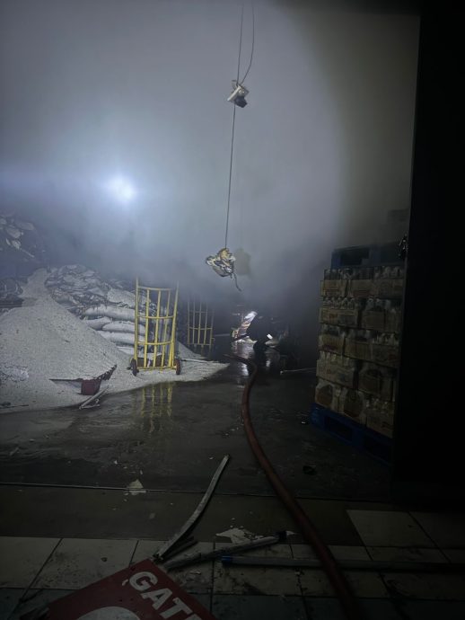 (八打灵再也9日讯)一间四层楼的杂货仓库于今日凌晨起火,3名移工来不及逃跑困在火海内,幸消防及拯救人员及时将他们救出,3人皆未受伤。