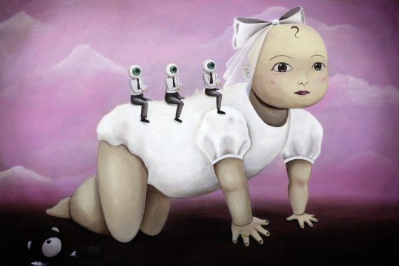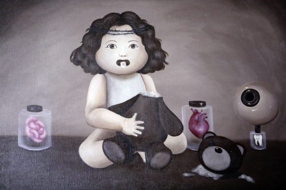 她说,由于作品的灵感都来自于潜意识,因此她的画往往带有隐喻。参展时,她最常收到观众的反馈是:“很可爱,但有点恐怖。”