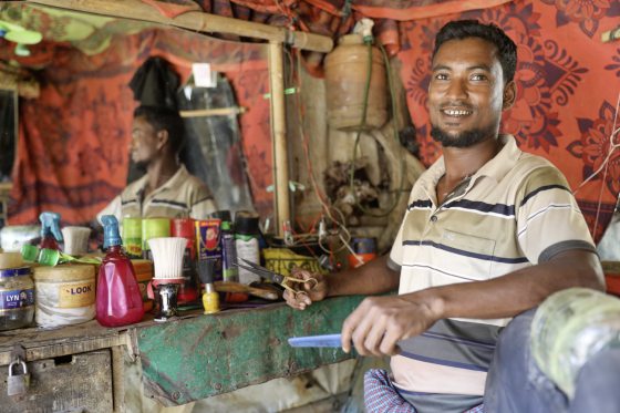 对于营地里的男人来说,除了渔网制作培训,理发培训和水管工培训也越来越受欢迎,吸引了许多人的兴趣。培训结束后,许多人开始在营地里卖渔网。“当我赚钱的时候,我感觉自己还活着,”来自11号营地的25岁男子贾希德(Jahid)说道,“我以前总是无所事事——现在我的生活感觉更有尊严了。”