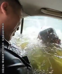 根据网上流传的视频显示,这名男从业员还亲自演示落水后如何靠上述的自救工具进行逃生,同时还靠这工具成功把车里的乘客救出。