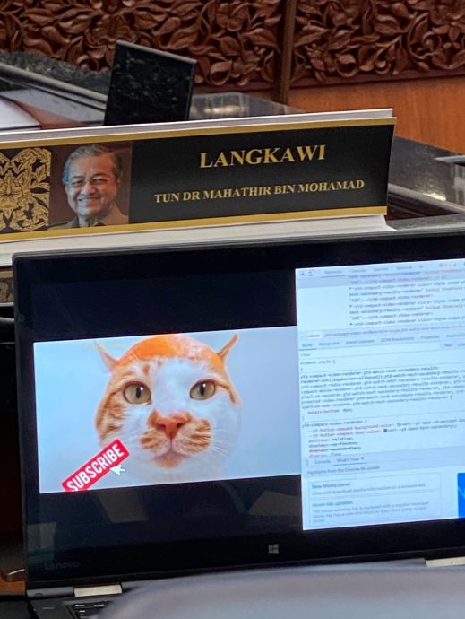 他上载两张几年前在国会拍摄的照片,并揭晓答案——“敦马在看猫咪影片,不是一次,而是多次,还会自己一个人偷笑。”