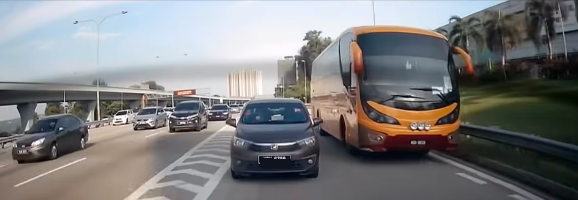 (加影11日讯)一辆校巴在狭窄路段高速硬挤超车,差点连撞2辆轿车,视频曝光后引起警方注意,巴士司机终被逮捕!