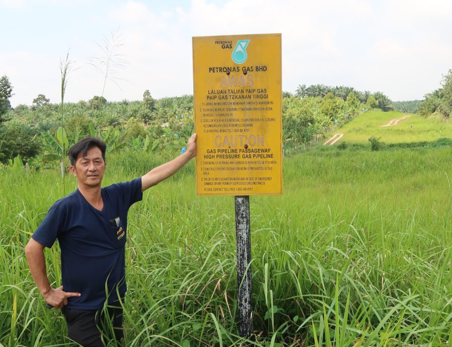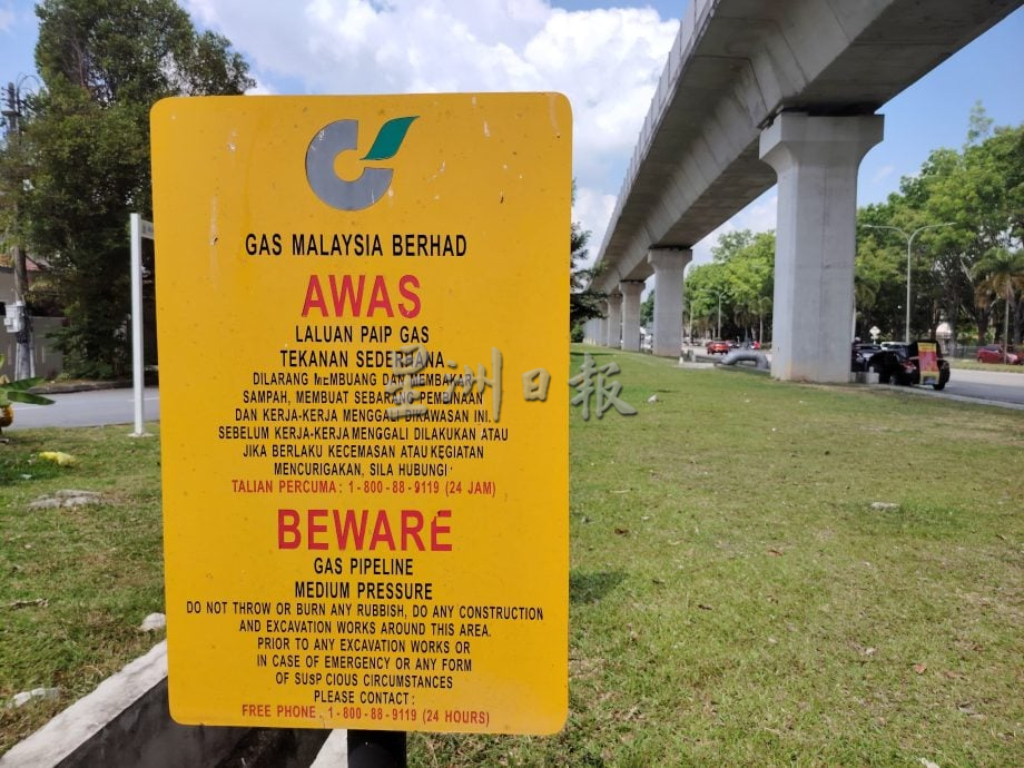 天然气管道范围竖立告示牌,严禁任何挖掘工程焚烧和丢垃圾。梳邦再也市政厅日前也禁止居民在相关范围种植农作物。(罗忆雯摄)