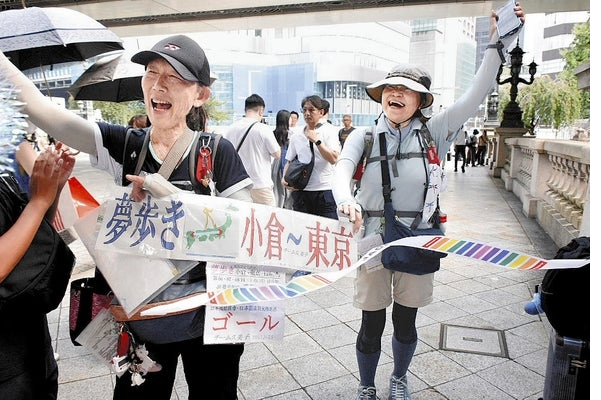 (东京11日综合电)日本85岁阿嬷河野久美子几年前立志从北九州市徒步走到东京都,她与队友本月稍早抵达终点东京都日本桥,前后用3年多的时间,分阶段走完1295公里,顺利达成这项壮举。