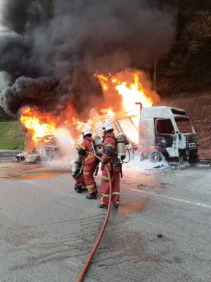 加叻大道罗里失火成火海 载露营装备烧毁九成