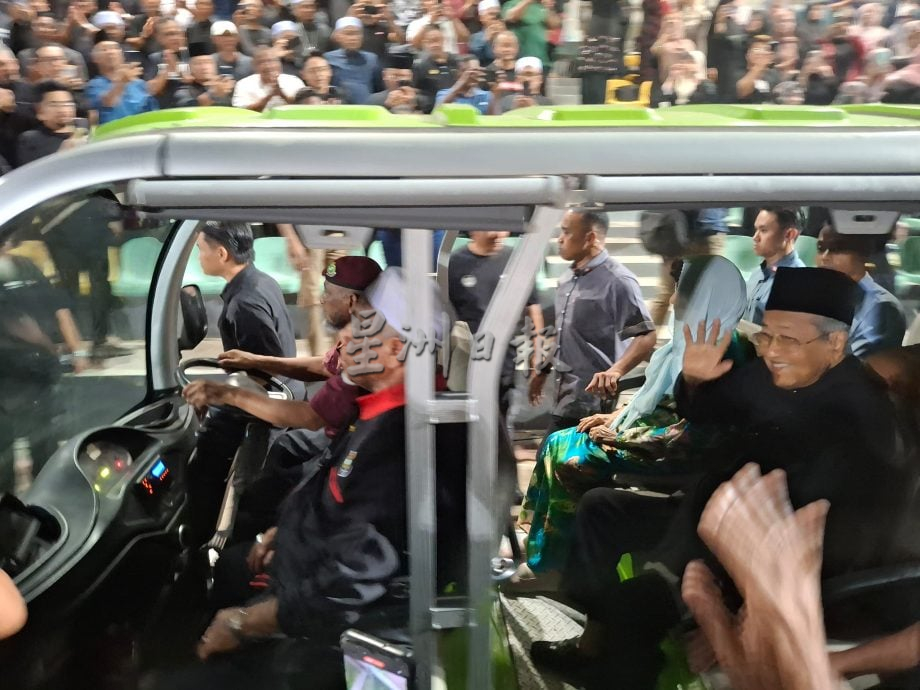 前首相敦马哈迪与夫人敦西蒂哈斯玛乘坐小车抵达现场(黄腾辉拍摄)