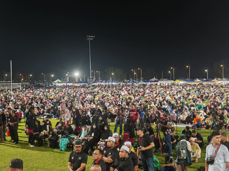 现场人潮越来越多,填满半个足球场。(黄惠玲摄)