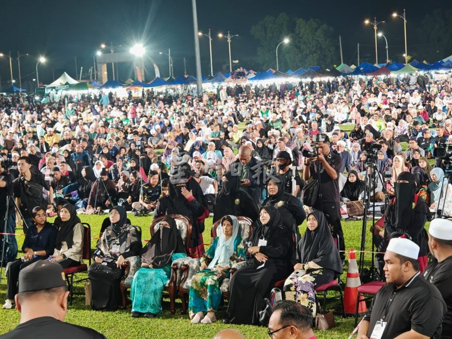 马哈迪夫人敦西蒂随同出席集会。(黄惠玲摄)