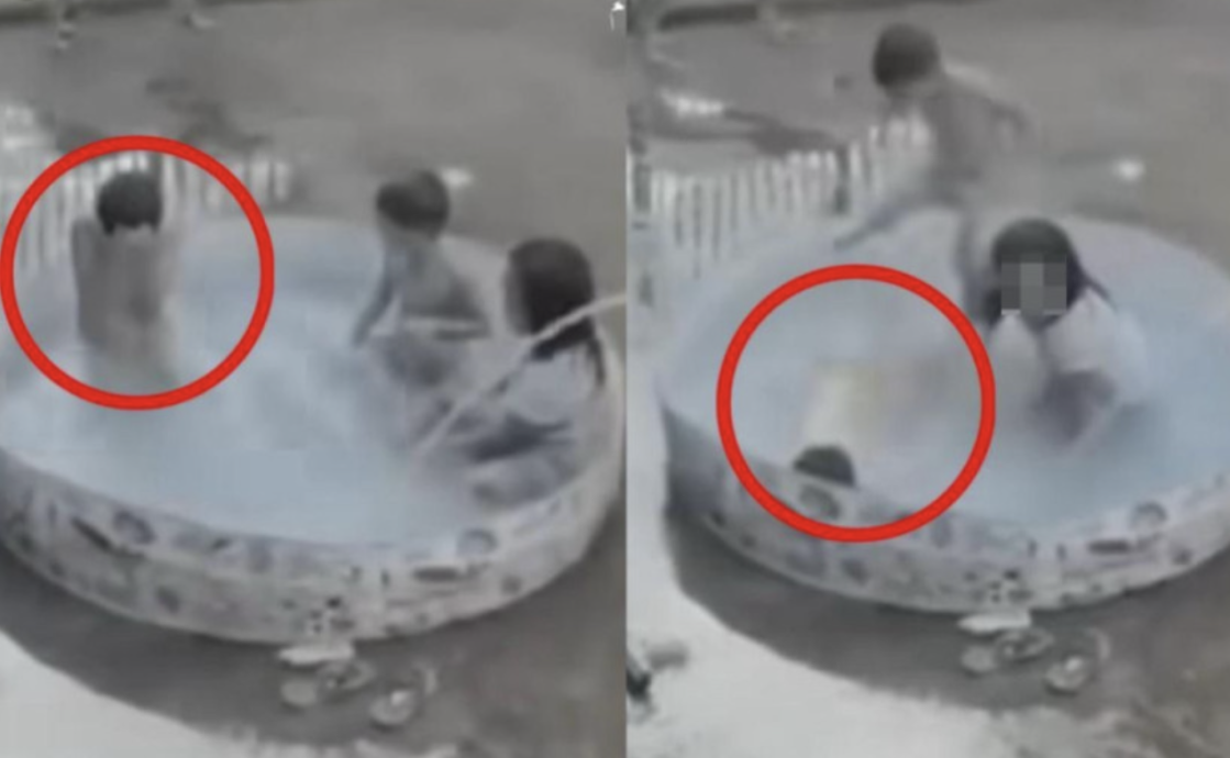 据视频所见,事发当时三名小朋友在小型充气泳池内嬉戏玩水,期间其中一名男童突然用手遮住脸部,接着身体失去力气,整个人倒在水中不动。