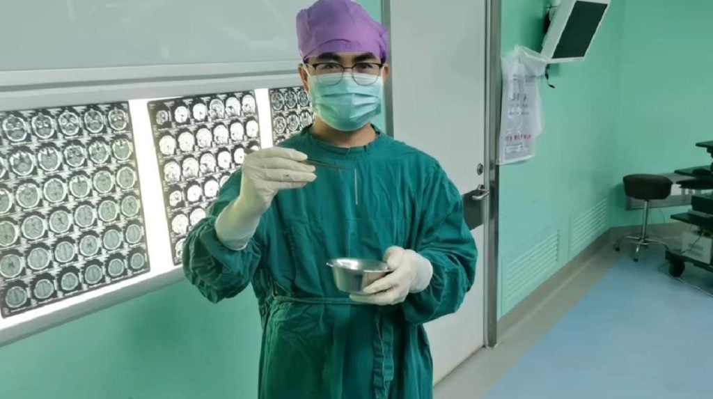 (广东18日讯)一名38岁男子突然失语,头部还不受控制抽搐,结果检查出脑部长虫,且正逐渐往脑内深处钻,幸好医生及时发现,以唤醒技术进行手术,成功活捉一只10公分裂头蚴,并揭露男子常有一行为而“引虫上脑”!