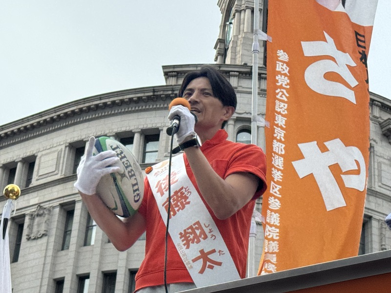 参政党候选人也在各地冲刺,比例代表选区候选人后藤翔太号召支持者出门投票。他表示,6月才刚落幕的东京都议会选举中,正是因为投票率提高,才让参政党从0席一举跃升至3席。后藤表示,“不要认为自己的一票不会有用。投票率提高5%,就会发生重大变化”。