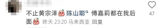 GD《Übermensch》大马演唱会首场演出,吸引不少海外艺人特地前来朝圣,有眼尖的粉丝目睹黄宗泽戴着黑色帽子与灰色口罩,低调隐藏在VIP摇滚区的粉丝群中,在安歌环节时就与友人率先离开会场,相当低调。傅嘉莉也前来大马追星,并在IG限动上传她在VIP摇滚区的视角。