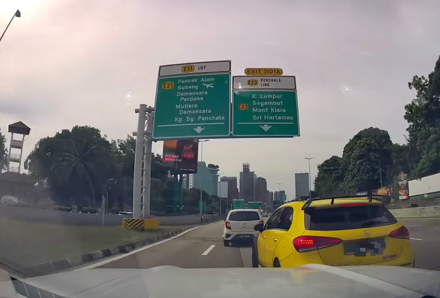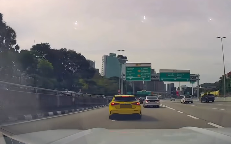 (八打灵再也22日讯)疑因不满未被让路,一辆黄色轿车竟一路紧追前车,并在途中多次急刹制造险象,引发其他道路使用者忧心!