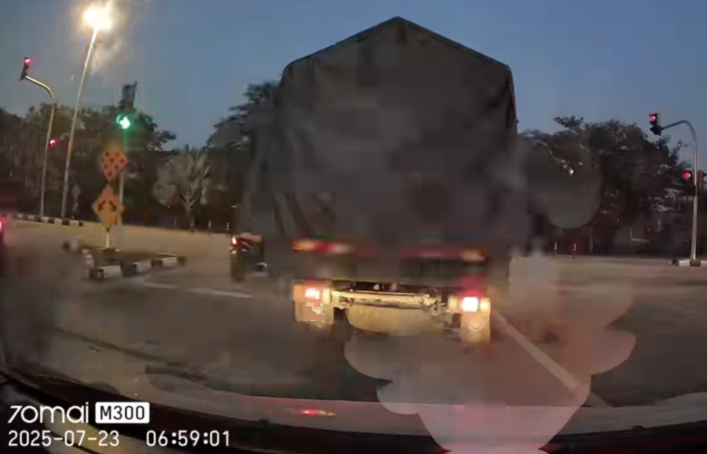 (八打灵再也23日讯)红绿灯久等不转,相信是罗里停得太后没触发感应器,后方女司机见状果断下车提醒,果然不到一分钟就转绿灯,引发热议。