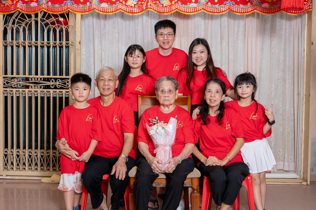 由于人数众多,在大合照环节就用了约45分钟才完成,阿嬷之后还与后辈每个小家庭一一合照,虽然整个拍照环节超过2小时,惟阿嬷始终笑容满满。