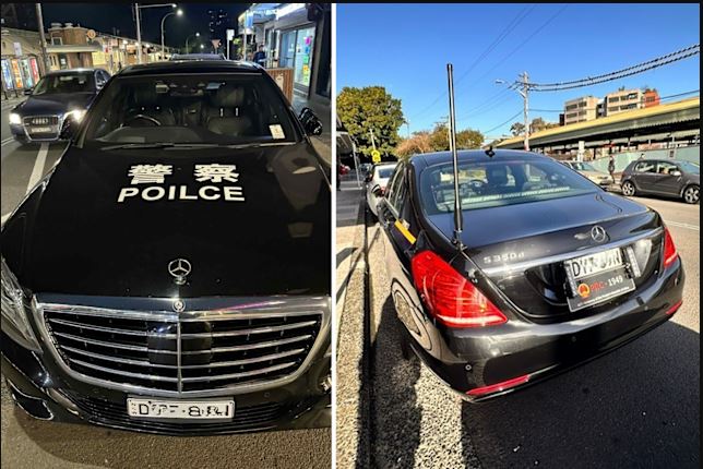 (悉尼24日综合电)7月18日下午,澳洲新南威尔士州警方在一处火车站外巡逻时,发现一辆黑色奔驰轿车停放可疑。车辆外观刻意仿照警车,车身及车牌印有警徽样式图案,并标注中文“公安”与“警察”。尤为引人注意的是,车头盖上以英文拼写“POILCE”——明显拼错了“POLICE”。