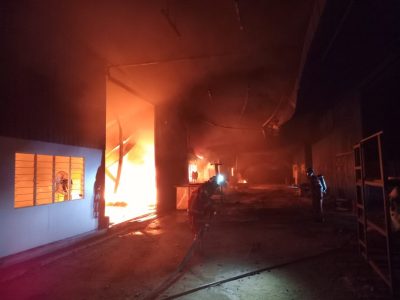 (八打灵再也24日讯)一间存放塑料应急反光设备(Emergency Reflektif)的工厂于凌晨起火,消拯人员耗时逾3小时才成功将火势扑灭,所幸未造成任何伤亡。