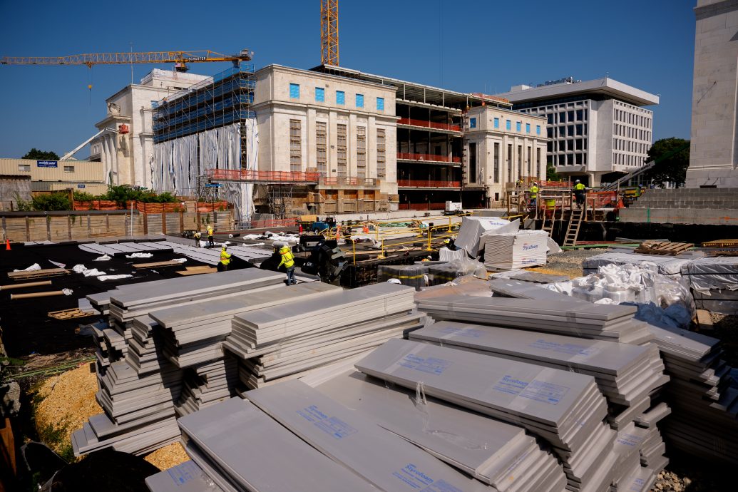 报道提到,特朗普视察联储局内部一个施工区域。这里在对两座历史建筑进行进行规模庞大、耗时多年的翻修工程,近来也成为特朗普抨击鲍威尔的焦点之一。