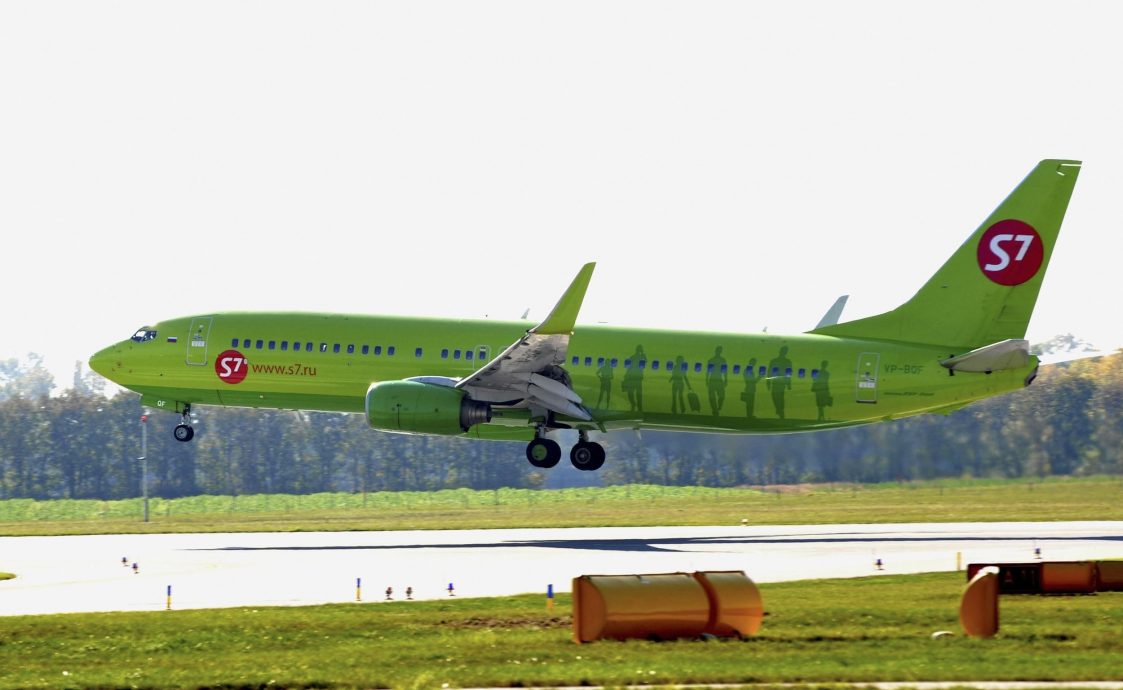 俄罗斯S7航空公司一家波音737-800在机场降落。(美联社档案照)