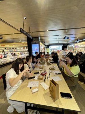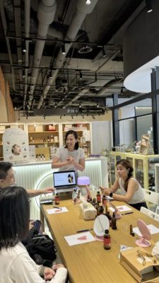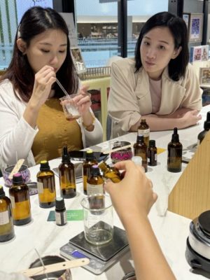疫情时期,她配合芳疗学院的号召,筹办了多场公益性质的舒压手作工作坊。疫情后,她踏出了第一步,在商场内设立了一间工作室,亲自指导手作课、也教导芳香疗法基础课。一年后,工作室移到了另一个商场,同时也在诚品生活开了第二间工作室。