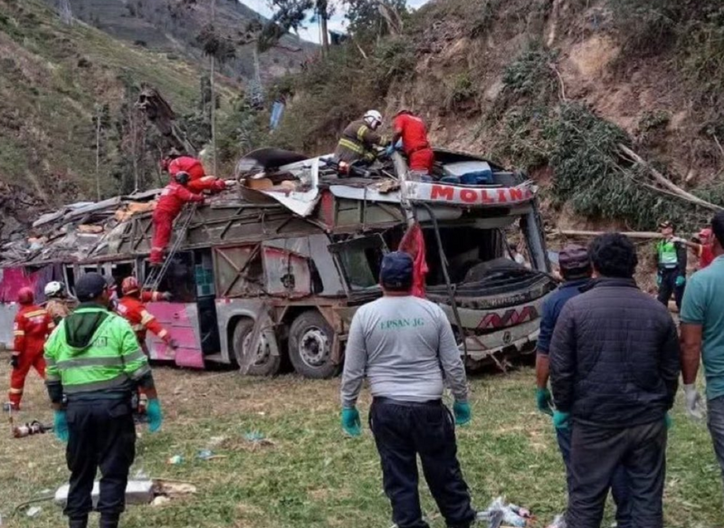 美联社报道,这辆巴士隶属客运公司Expreso Molina Líder Internacional,事发地点位于秘鲁中部胡宁大区的帕尔卡区域,巴士不知何故偏离道路从山坡翻覆下去。