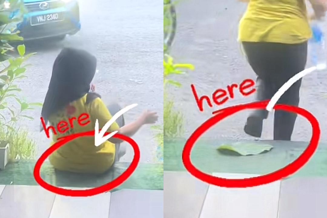 据网民Rash77分享的视频显示,这名女子在地上铺了一张叶子坐着等车,而有关叶子疑似她顺手从商铺前种在花盆的观赏植物摘下来的。