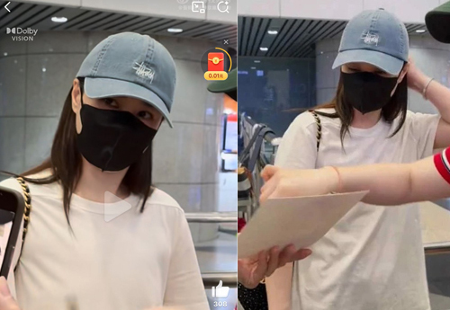 抵达马来西亚后,可见同款打扮的阿娇,戴上牛仔鸭舌帽和口罩,并站在《营业吧!花花》牌子前等候,印证了她将会现身节目,等待工作人员接她离开的空档,有粉丝递上海报让她签名,她亦没有拒绝,后来疑似粉丝要求署名时,只见她一脸疑惑的歪头,网民纷纷留言:“好可爱啊”、“这歪头杀,我受不了”、“好俏皮”、“口罩和帽子都掩盖不了的美貌”。