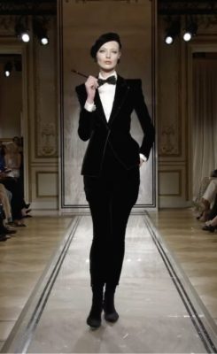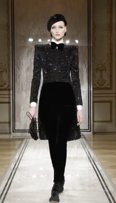 近年来中性衣着一直都处于保温的状态,女性穿上西装展示中性风格打扮也丝毫没有违和感,高定虽以礼服为主,可是西装也可以做得很精致,一系列高级尽显精致、高贵气质。