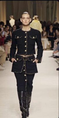 Chanel今季以田园风情为主题,色调在黑白之外也运用了大地色泽。看Chanel的高级定制服秀,会认同那一句话,“魔鬼藏在细节里”。整体服装穿出场的感觉就是好看,可是在好看之外,便会赞叹每一个小小的细节里,都是精湛工艺的演示。羽饰、纺织、刺绣,还有品牌经典的花呢绒,都是精髓所在。