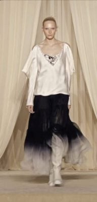 2025年秋冬季是他所参与的第四个高级定制服秀,看他的秀有感看的不再只是一场服装秀,而是走入一个艺术廊看走动的艺术作品展。整体感觉就是在欣赏一场艺术感拉满的演出,色彩、灯光的结合下,或许会有点诡异,但是却美得叫人惊艳。更贴切的阐述了,高级定制服秀在时尚里艺术殿堂般的存在。