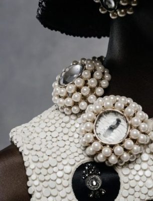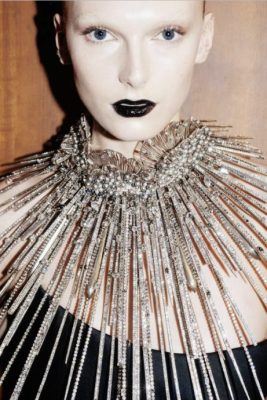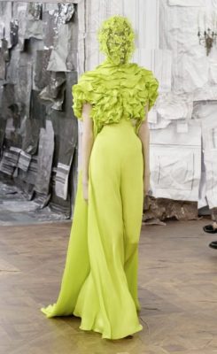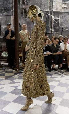 华丽、高贵,几乎都是用来形容高级定制服的词,可是来到Maison Margiela这里,让人稍作犹豫了一下。品牌在今季用上的竟是以收集的铁盒,经敲打后制作成的面罩,又或是人手缝合的金属,可是讲究以匠人精湛手艺制作的这一点,却完全没有辜负。再有以花样蕾丝一一缝合的面罩、礼服,都属匠心之作,唯艺术呈献感觉更浓。