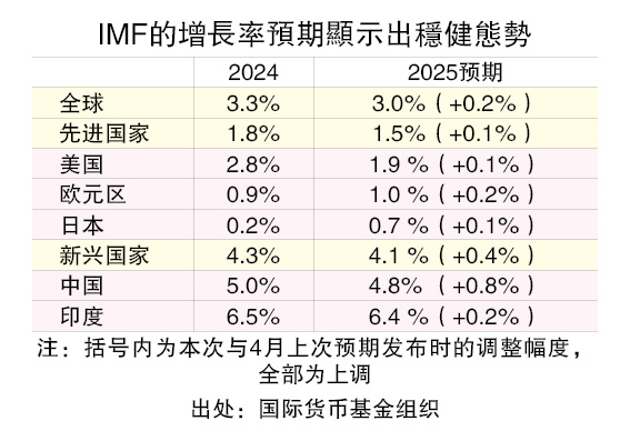 IMF根据2025年1至3月的实际数据等,将日本的经济增速预期上调0.1%,至0.7%,也将今年欧元区预估成长率调高到1%,明年预估值则维持1.2%。