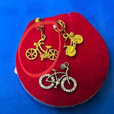 骑游10年,两年前因急性关节炎来袭类风湿性关节因子偏高,医生嘱咐再也不能长途骑行。唯有近近骑花园骑短途,唯单车不能割舍。某天和老姐往金店,一眼看中可爱小小脚车坠子。一发不可收拾,继续买小小金脚车。公路车菜篮车淑女脚车买个遍,完全没有戴连价格标签也没丢弃,同事说简你没戴为什么买呢。不为其他,只因太喜欢脚车了。