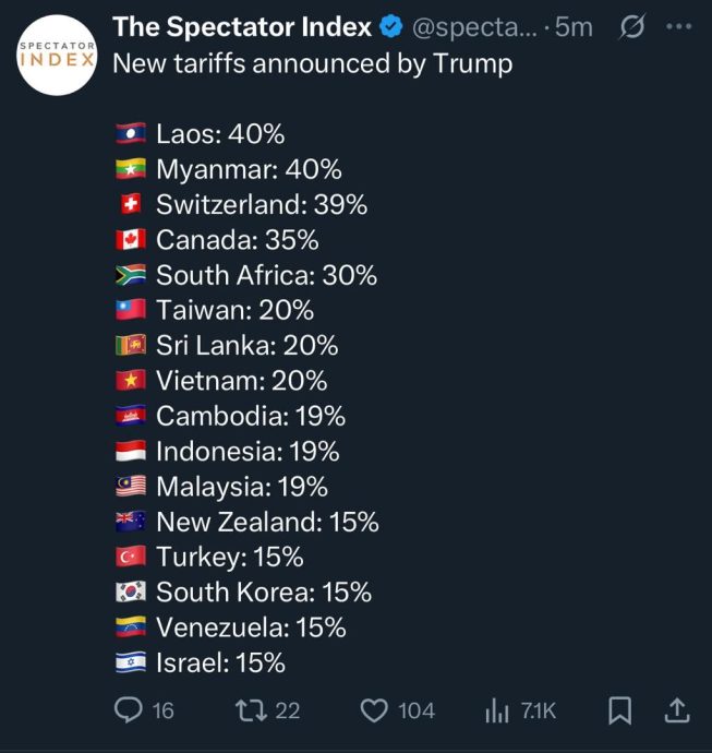 利维特说:“至于那些尚未达成协议或收到信函的国家,它们将在今晚午夜关税宽限期结束前收到特朗普政府的通知。”(联合早报)