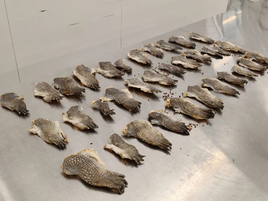 据介绍,当日,皇岗海关关员在福田口岸对进境旅客及其行李物品进行监管时,发现一名旅客进入海关监管区时未向海关申报,且携带的行李箱机检图像异常,随即对其进行拦截检查。经查验,海关关员在该旅客行李箱内发现用塑料袋包装的疑似鳄鱼掌34件,净重2公斤。后经深圳海关动植物检验检疫技术中心鉴定,上述物品为暹罗鳄鳄鱼掌。暹罗鳄属于《濒危野生动植物种国际贸易公约》(CITES)附录Ⅰ所列物种。