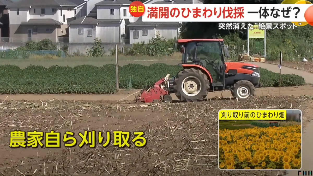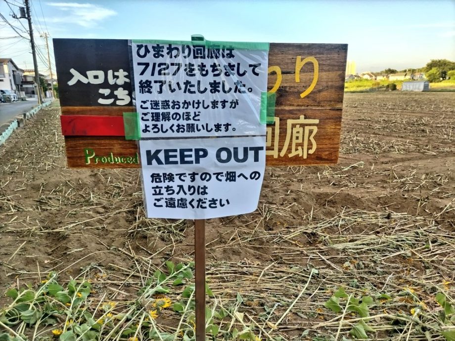报道指,在田边的告示牌上写道:“7月27日已结束”。在最佳观赏时期,田主亲手割下了所有向日葵,并宣布活动中止。