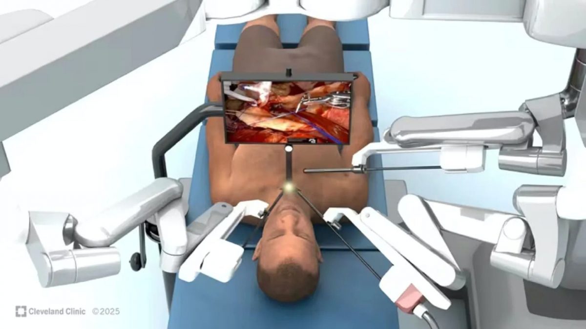 这项创新手术无需锯开胸骨,而是通过颈部自然褶皱处开一个小口,借助机器人系统精准操作,完成心脏主动脉瓣的移除与植入。该技术最初源自“机器人经颈胸腺切除术”,此次是其首次临床应用于主动脉瓣置换(AVR)手术。