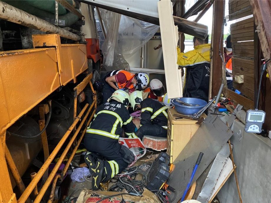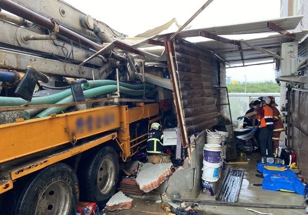 (澎湖2日综合电)台湾澎湖县马公市一处铁皮屋仓库周六发生意外事故,一辆混凝土输送泵浦车疑刹车失灵向前滑行,一对父子连忙跑上前试图以肉身阻挡,当场惨遭泵辗压。警消赶到后先救出30岁的儿子,但已经没有意识,50岁的父亲被救出时早已身亡。