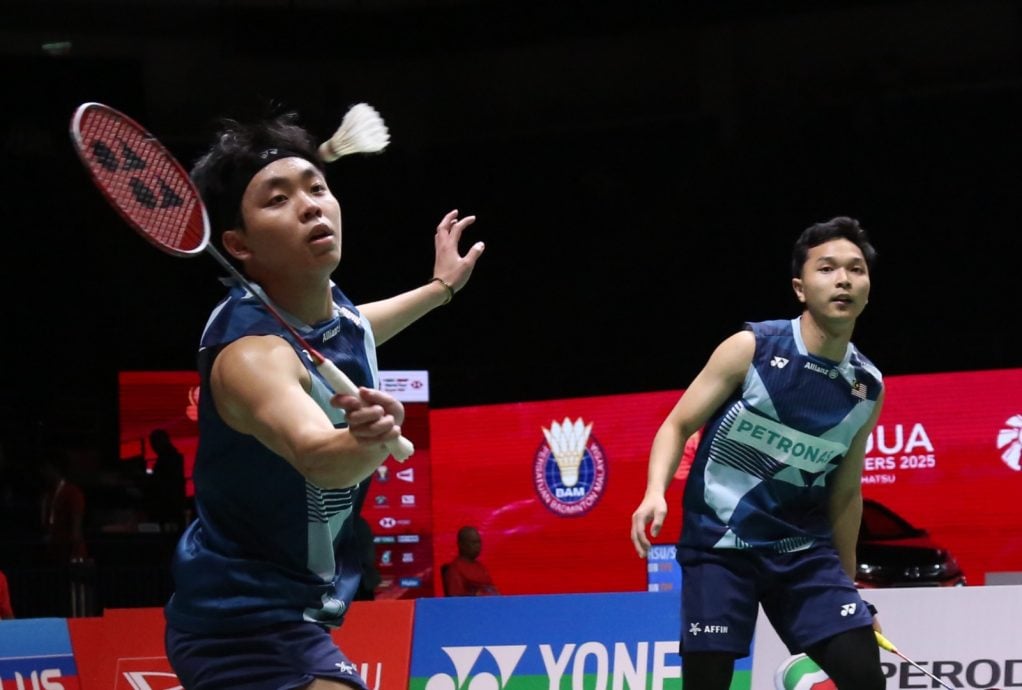 今日于男双决赛,大马4号种子“阿叶组合”阿里夫与叶睿庆(世界排名第24)直落2局报捷,以22比20、21比18力挫印尼头号种子、世界排名第8的“沙莫组合”沙巴尔与莫雷萨封王!