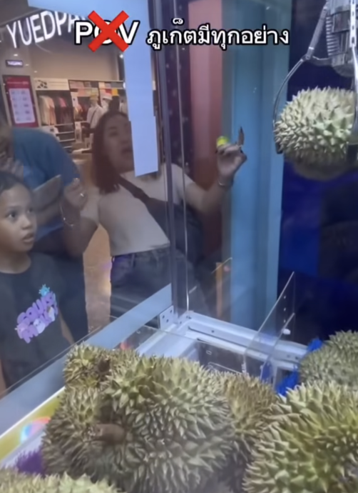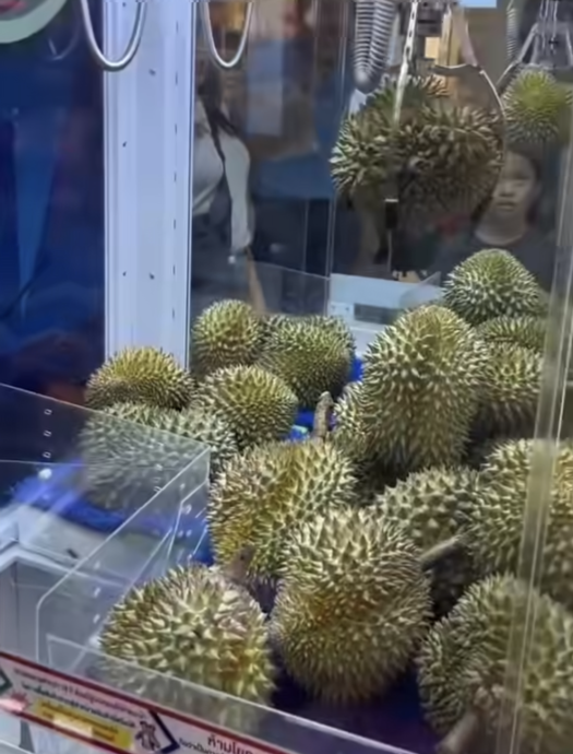 帖文写道,“在泰国,抓娃娃机不是用来抓娃娃或玩具的,而是要改抓榴梿才对味,哈哈!”