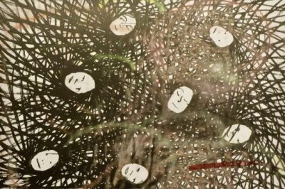 他擅长描绘人脸,但并非写实派。他笔下的人脸扭曲、抽象、层层叠叠,透露出一种强烈的情绪张力。他希望通过绘画将隐藏在人内心深处的复杂感受展现出来。“很多人画脸只是画表面,而我画的是人的七情六欲。”