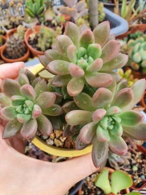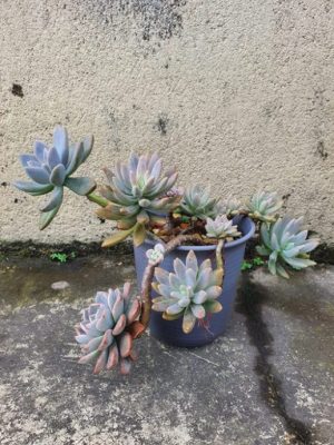 最初跌入肉坑,看到粉色多肉时,心情也跟着粉粉的,人都温柔起来,以为自己就拥有了网上那些缤纷艳丽的多肉,殊不知这些美丽的多肉大部分都会因为气候问题而转变为一般多肉的蓝绿色调,有些甚至适应不了马来西亚气候而阵亡。有了一些种植经验后,我就不再追求多肉的颜色,反而更加关注售卖本地培植多肉的卖家。通常这些多肉没有艳丽颜色,但更有助于提高我种植多肉的成功几率。