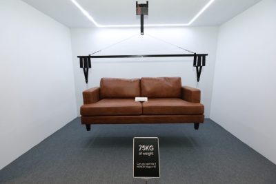 在轻薄这件事上,HONOR真的很给力。还记得我出席Magic V2在大马的发布会,现场特别准备了一个水缸,工作人员将一架231g的Magic V2放在一张A4纸上,让它成功地“浮”在水面,让人印象深刻。而这一次,在Magic V5的发布会上,HONOR更加“激进”,在会场摆放风机,直接将展开的Magic V5吹起来,在风中飘浮。