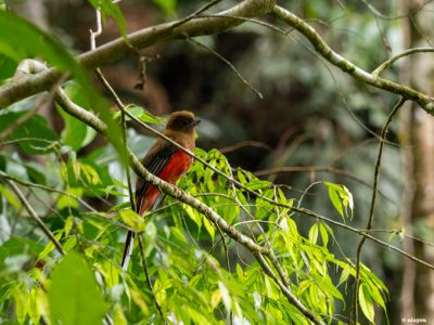饭后散散步,红头咬鹃雌鸟突然出现,这种不期而遇,最是迷人。