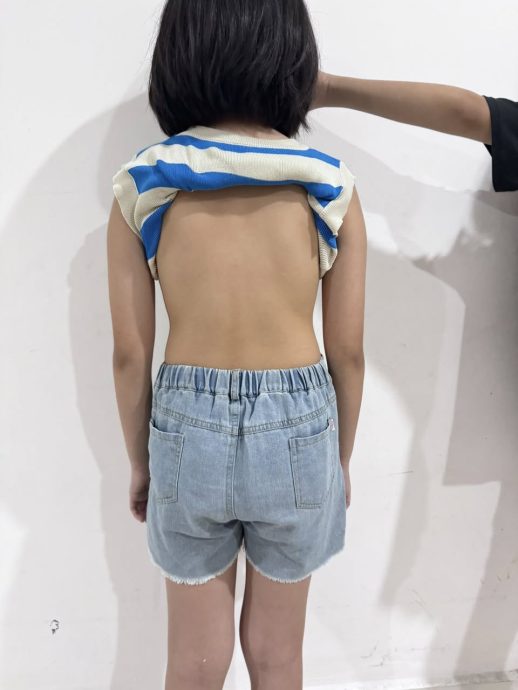 一名母亲在脸书分享,家人早前察觉女儿的脊椎似乎有些歪曲,于是趁到护理治疗中心时顺便为孩子做检查。